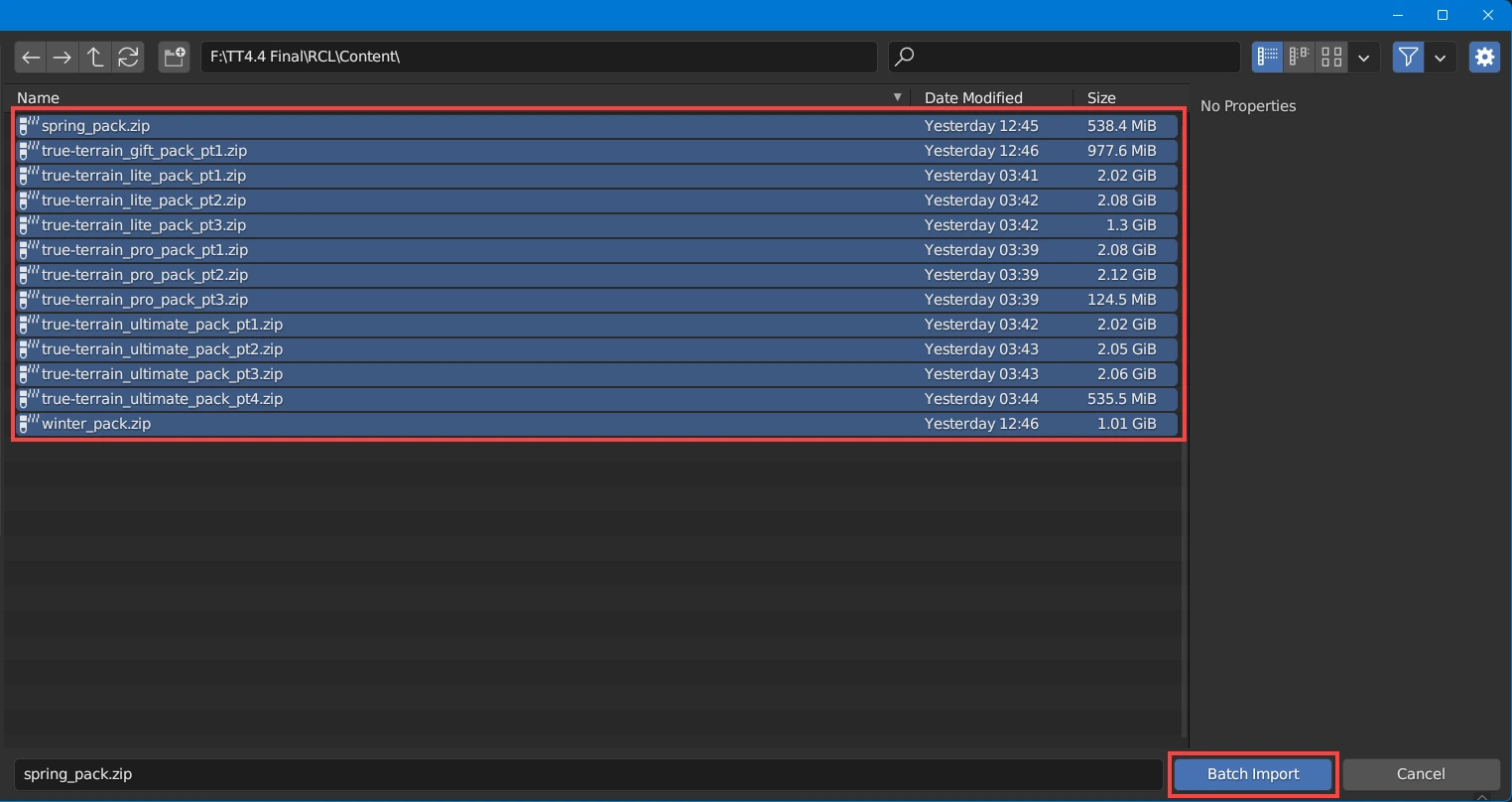 There is a chance that Blender may crash during this phase for some users. This is a hardware limitation and you will need to reduce the amount of files you select for the batch import. Importing is reasonably quick, so select packs in parts if you are having crashes. i.e. if you have the Pro version, import Lite first, then Pro to ensure stability.