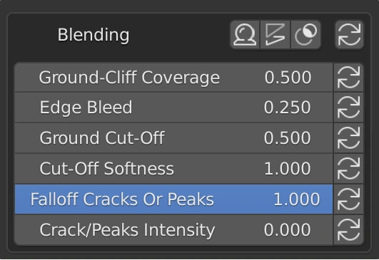- Blending Section Used for mixing Ground and Cliffs nodes. Only enabled if Cliffs are enabled.