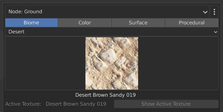 - Click on the icon picker (the image) to view all textures within the selected subcategory. Click on a texture to apply it to your landscape and to see its settings