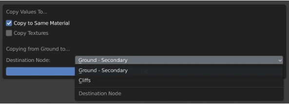 - Destination Node: The node from the same material to copy settings (and textures if enabled) to