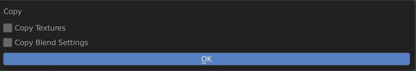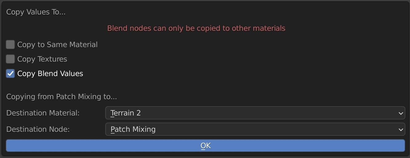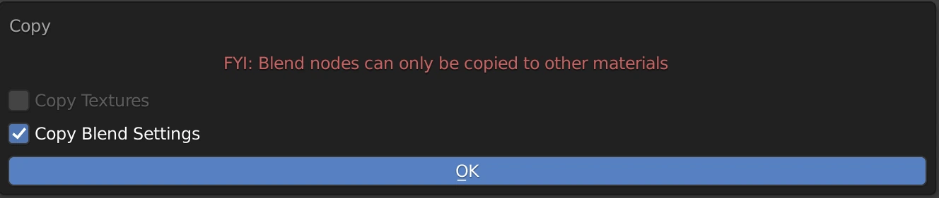 - Copy Textures: There aren’t textures to copy with blend nodes